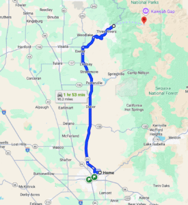 The drive is about two hours (from Bakersfield), or a little more, depending on how deep into the park you go. We ended up with 41 MPG for the total trip.